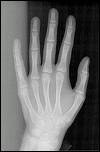 | Handwurzelaufnahme zur Bestimmung der individuellen Reife des Patienten | Fernröntgenseitenbild (FRS) zur Beurteilung der Kieferbeziehung aus seitlicher Sicht |